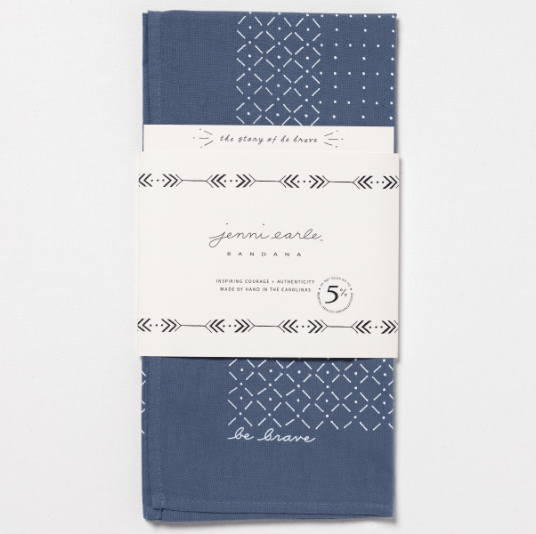 This original Jenni Earle bandana is more than a bandana. It's a reminder to be brave, to listen closely to your own voice and get on with the doing, even if you feel fear. On those days when you need an extra push, this talisman will be your reminder to keep going and be brave.