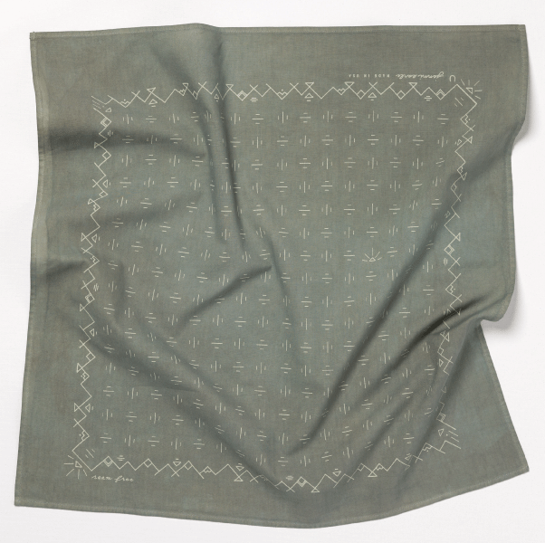 hand-dyed and printed bandana to be used as a talisman for adventure