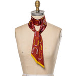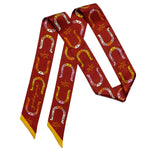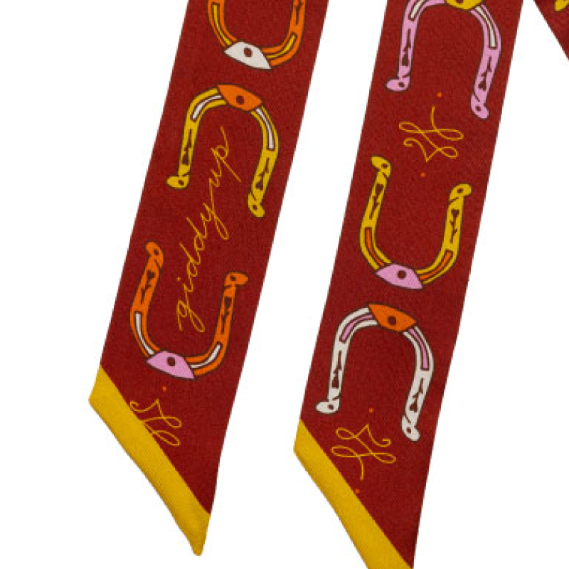 this one is a twilly. it's a fun, tie scarf meant to add a little disruptive style to your wardrobe. with a classic equestrian ribbon with the mantra "this ain't my first rodeo" this thin scarf adds effortless style to a basic tee or dresses up a crisp white shirt.
