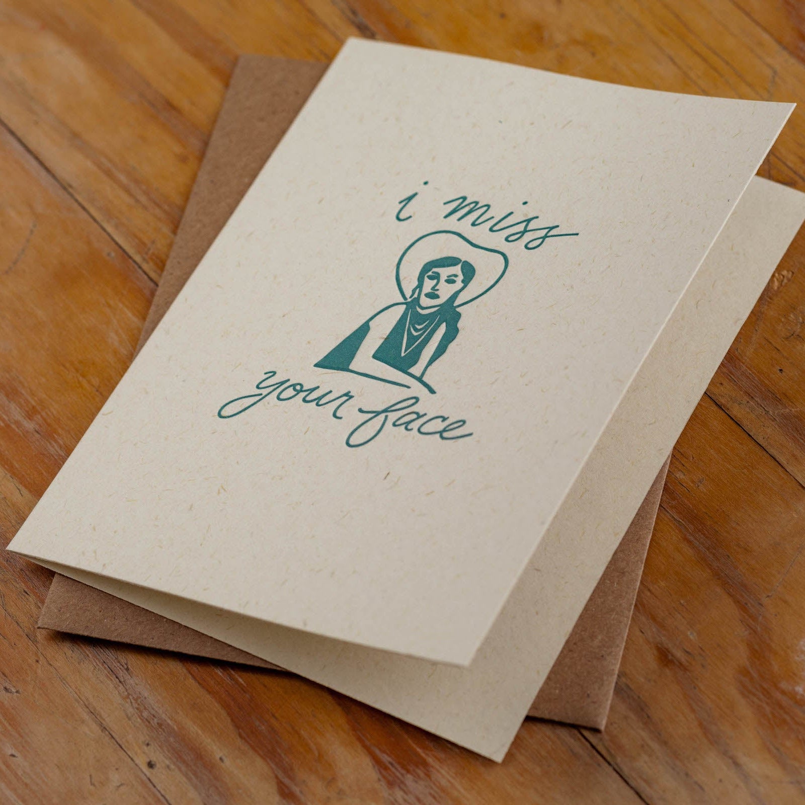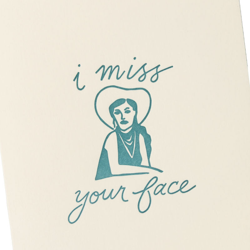 This letterpress card says it plain and simple: “I Miss Your Face.”