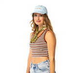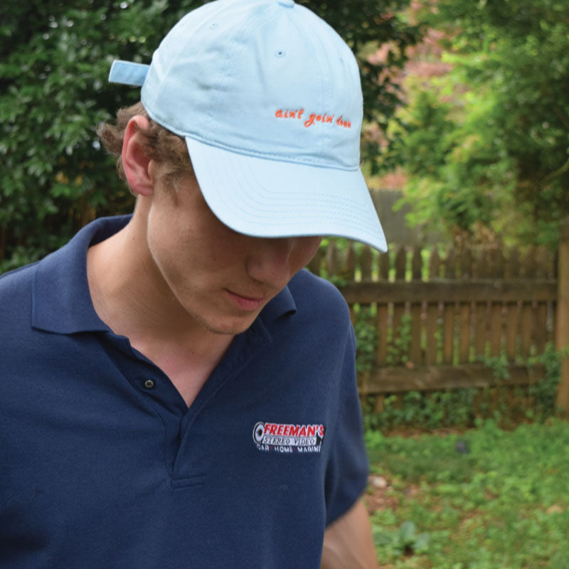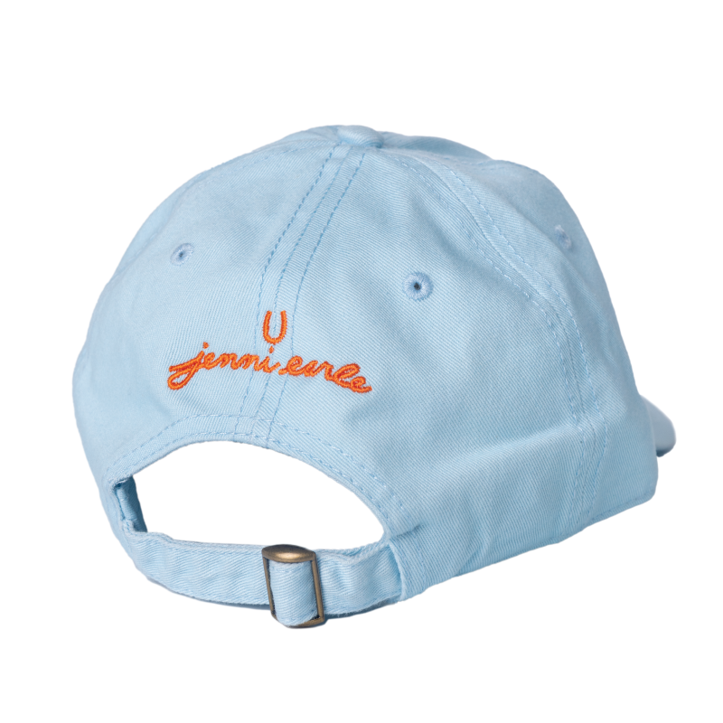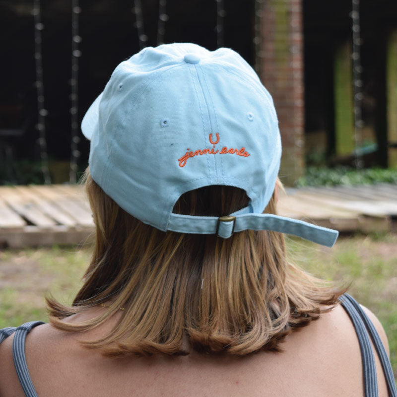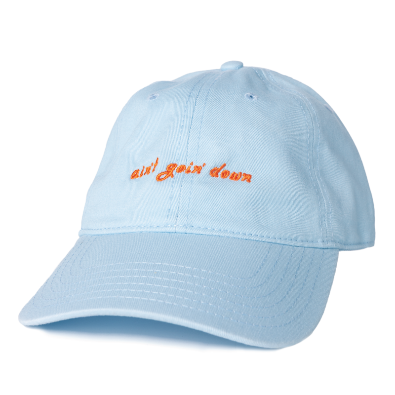 this classic, comfy dad hat comes with a powerful message to YOU! no matter what the world hands you, you ain't goin' down!! with fun baby blue and orange embroidery the colors on this hat match the enthusiastic tone.