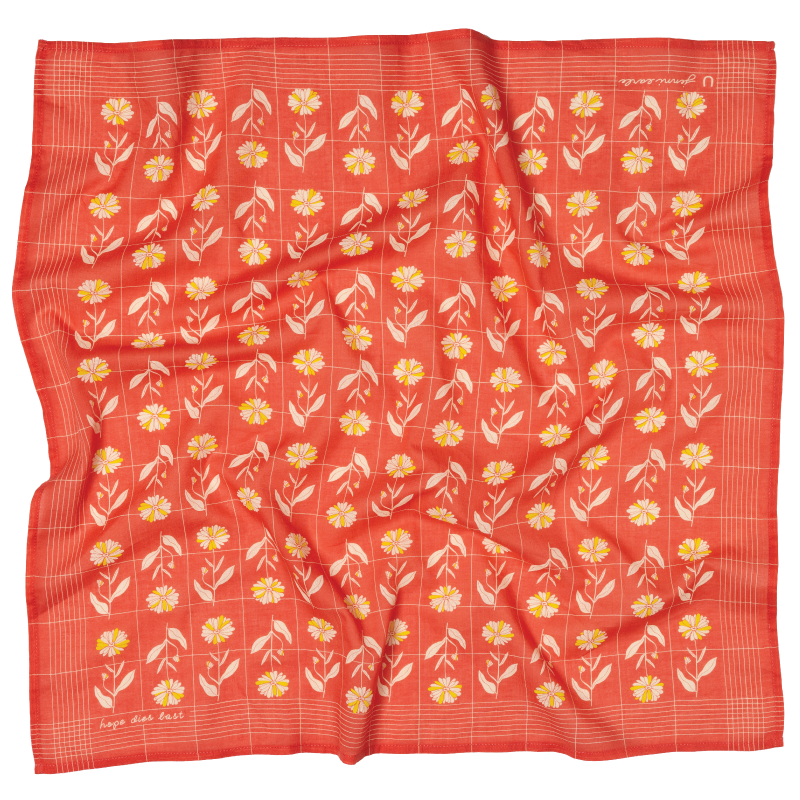 with the mantra “hope dies last” on one corner, this vintage western style bandana can be a reminder for us all that we can hold onto hope as long as WE NEED TO! hope is the thing that keeps us waking up and trying. keep on keepin' on!