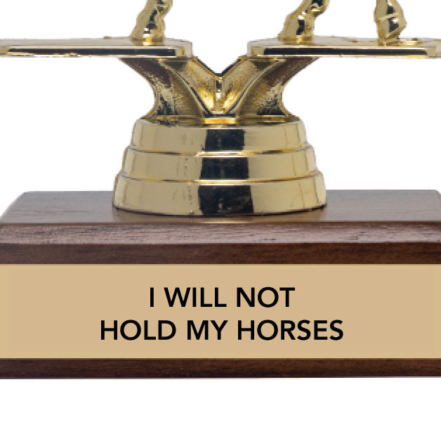 What folks *really* think of our I WILL NOT HOLD MY HORSES trophy