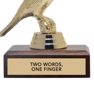 What folks *really* think of our TWO WORDS, ONE FINGER trophy
